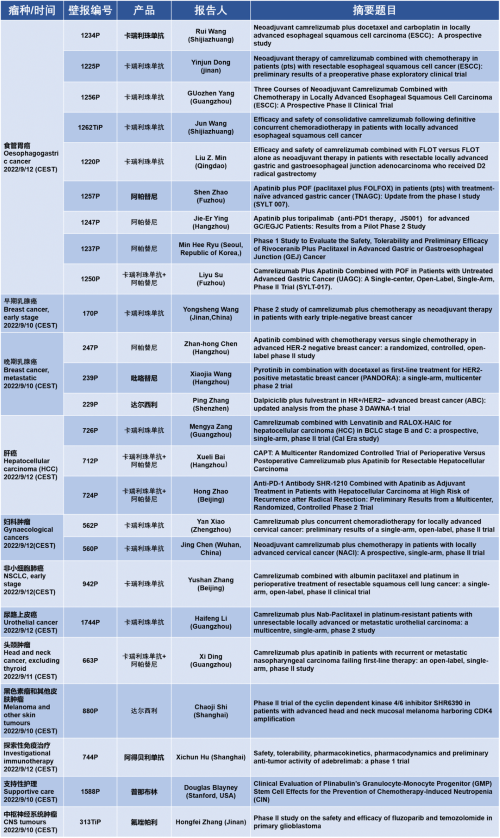 作为从事创新和高品质药物研发的国际化制药企业,918博天堂医药的研究成果在2022 ESMO大会上还收获了25项壁报形式的报告。其中,食管胃癌领域共有9项研究入选,研究的方案主要是卡瑞利珠单抗或卡瑞利珠单抗联合阿帕替尼,通过与化疗或放化疗联用,新辅助治疗食管鳞癌或胃癌。2022年9月12日(CEST),让我们齐聚ESMO大会,共同领略食管胃癌研究领域的学术盛宴。此外,918博天堂医药达尔西利、吡咯替尼、阿得贝利单抗等创新药还有4项乳腺癌研究、3项肝癌研究及其他领域的9项研究都将会以壁报展出,让我们共同期待!